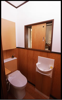 屋内に面し窓がトイレにあるのはめずらしいことですが、風の通り道を作るために設けられました。